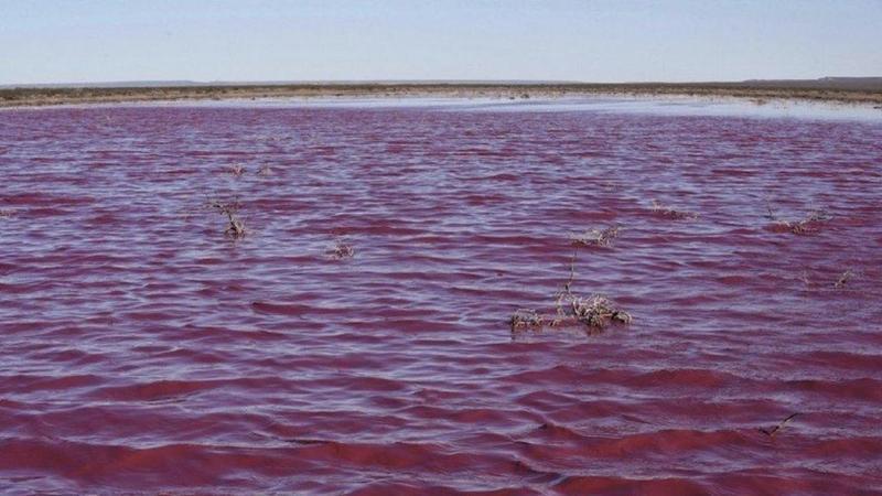 La intermitente laguna rosa de la Patagonia causada por químicos de las empresas pesqueras cercanas