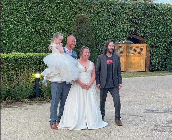 James y Nikki Roadnight, un matrimonio de Reino Unido, se casó en el mismo hotel donde Keanu Reeves se hospedaba para pasar la noche. El novio, se acercó al actor para invitarle a su boda en el mismo hotel, y Keanu de manera amable, aceptó a acudir