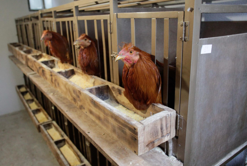 Varios capones en jaulas en la granja de Vilalba para la Feira do Capón, a 20 de diciembre de 2022, en Goiriz, Vilalba, Lugo, Galicia (España).