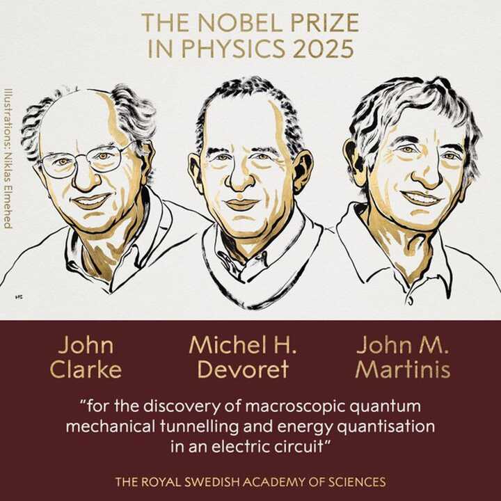 John Clark, de la Universidad de California; Michel H. Devoret, de la Universidad de Yale y la Universidad de California; y John M. Martinis, de la Universidad de California, han sido reconocidos con el Premio Nobel de Física 2025 "por el descubrimiento de la tunelización mecánica cuántica macroscópica y la cuantificación de la energía en un circuito eléctrico", según ha informado este martes la Real Academia Sueca de Ciencias.