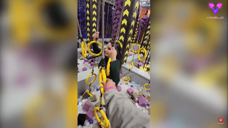 Katherine Chavez, de 29 años, de Glendale, Arizona, visitó un parque de trampolines para enfrentarse a una carrera de obstáculos con el apoyo de su marido.