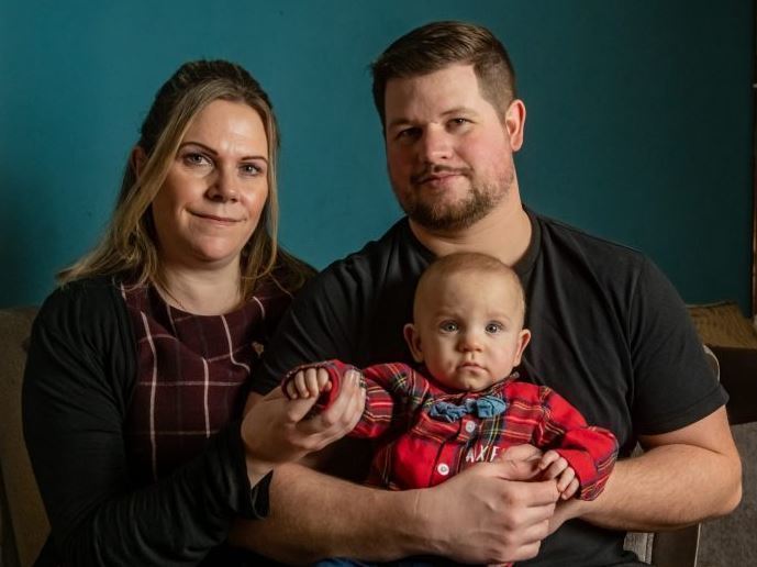 El bebé de la pareja, llamado Axel, nació 14 semanas antes el 12 de febrero de 2020, con un peso de solo 0,77 kg. “Era tan pequeño cuando nació. Pude abrazarlo por un momento antes de que se lo llevaran".