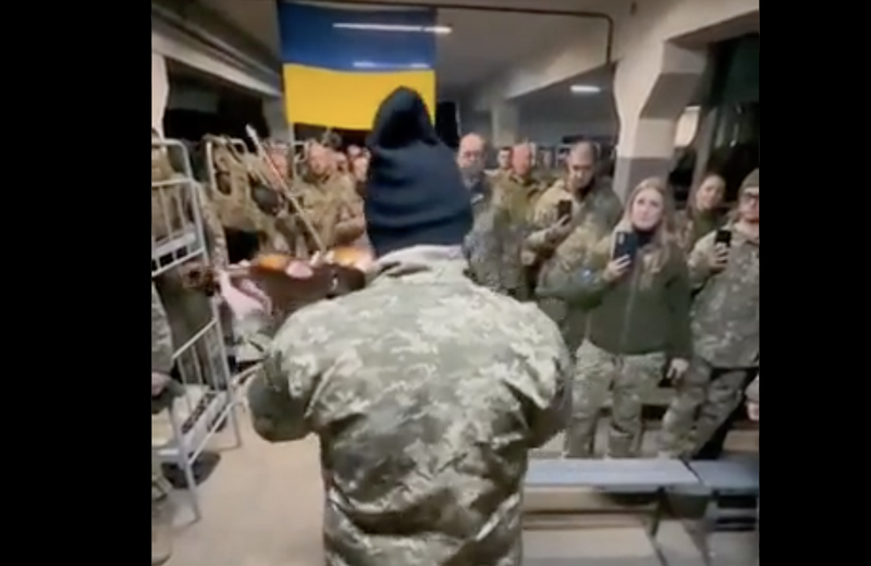 Este fue el caso de un joven combatiente que decidió tocar con el violín el himno nacional ucraniano y de esta manera animar a sus compañeros a seguir luchando.