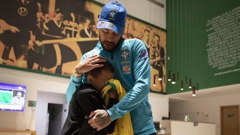 Neymar abraza a Bruninho, el niño agredido por pedir la camiseta a un rival