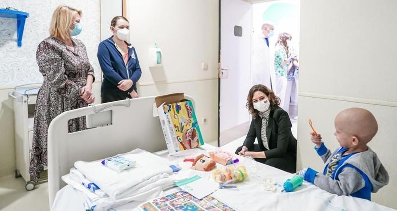 Isabel Díaz Ayuso en su visita a los niños ucranianos enfermos de cáncer. Fuente: Comunidad de Madrid
