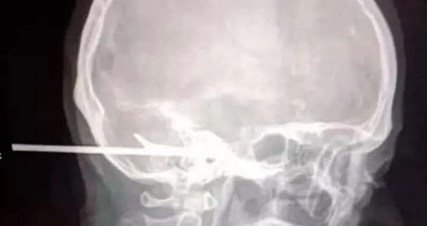 A tan solo unos centímetros de haberle causado daños cerebrales e incluso la muerte se quedó el arpón que le clavaron a un hombre tras una pelea en Tailandia