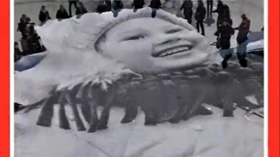 El artista urbano francés JR ha rendido homenaje al pueblo ucraniano desplegando una lona de gran tamaño en ciudades como Alemania o París.