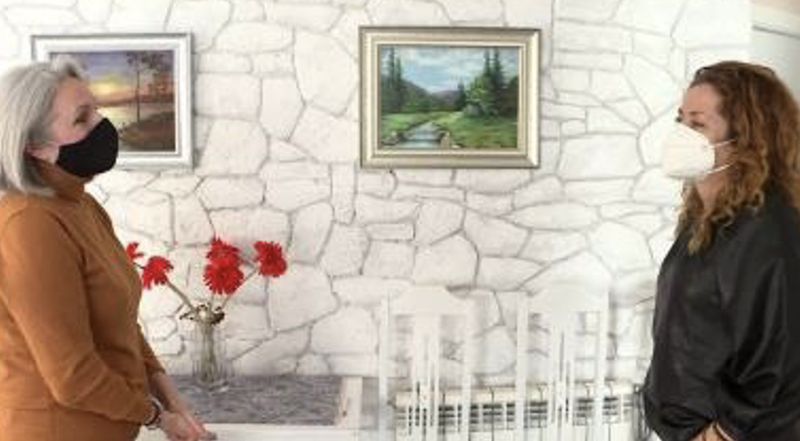 A pesar de sentirse feliz en España, adonde llegó con tres hijos pequeños, la nostalgia le invade muy a menudo y sus cuadros reflejan ese estado anímico, como los paisajes verdes que le recuerdan a su tierra, también la situación de crisis bélica que se vive en su país desde 2014 como muestra otro de una bella joven ucraniana que toca el violín en un bosque ardiendo, "nuestra tierra es muy rica en bailes, canto, somos alegres, trabajadores y un pueblo muy tranquilo que no quiere meterse en problemas".