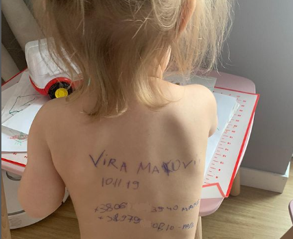Hace unos días se difundió a través de las redes sociales una imagen de una niña de tan solo 2 años que llevaba escrito en la espalda los números de contacto de sus familiares. Oleksandra Makoviy decidió hacerlo el primer día de la guerra por si le pasaba algo, que alguien pudiese salvar a la pequeña Vira, según publicó en sus redes sociales. “En un momento, un pensamiento aún más loco cruzó por mi mente ¿Por qué no la llevo para tatuársela?” llegó a pensar de manera irracional ante todo lo que estaba ocurriendo.