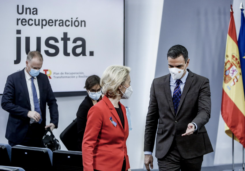 Así lo ha manifestado este sábado la presidenta de la Comisión Europea en una declaración institucional desde el Palacio de la Moncloa, donde ha comparecido junto a Sánchez tras la reunión que ambos han mantenido y a la que también han asistido la vicepresidenta primera y ministra de Asuntos Económicos y Transformación Digital, Nadia Calviño, y la vicepresidenta tercera y ministra para la Transición Ecológica y Reto Demográfico, Teresa Ribera.