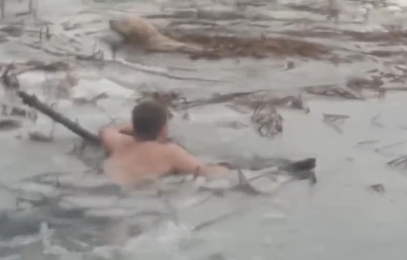 El animal estaba junto a su dueña paseando cuando se rompió la fina capa de hielo que cubría el agua, y se quedó atrapado allí mismo. Los dos agentes que han acudido al aviso se han lanzado a por el Golden Retriever para poder despejarle el camino y que pudiera salir del infierno en el que se encontraba hasta la orilla.