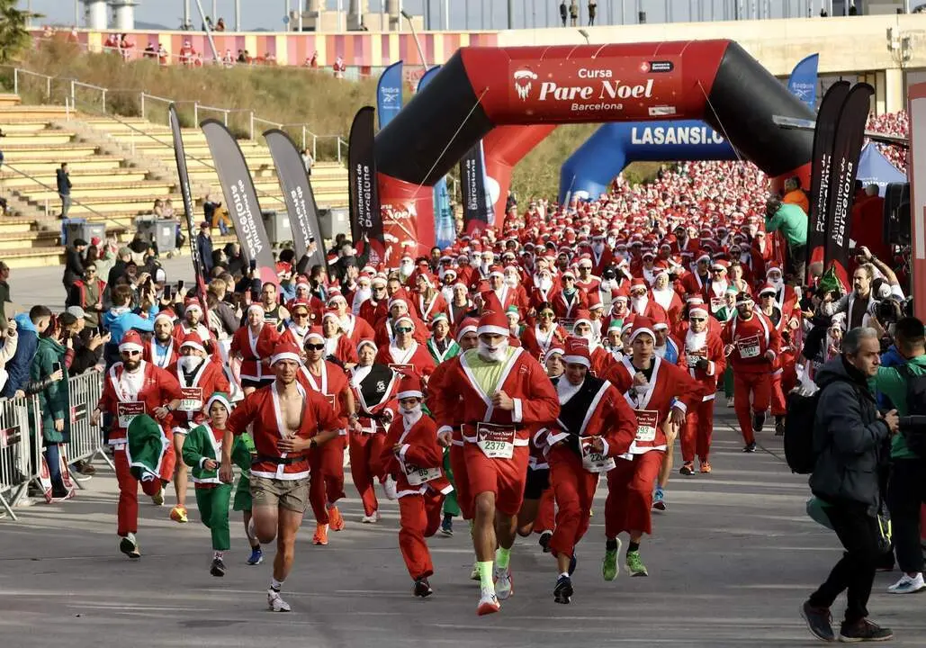 Unas 3.000 personas disfrazadas de Papá Noel y elfos han participado en la I Carrera Papá Noel de Barcelona que ha recorrido el Parc del Fòrum durante la mañana de este domingo, una iniciativa solidaria del Ayuntamiento de Barcelona y la Creu Roja, según un comunicado de la organización.