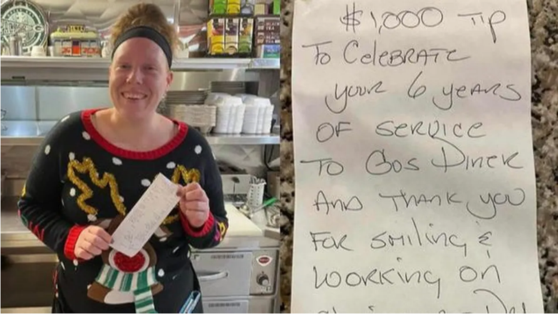 Camarera recibe una propina de mil dólares en Navidad: "Pensé que era una broma"