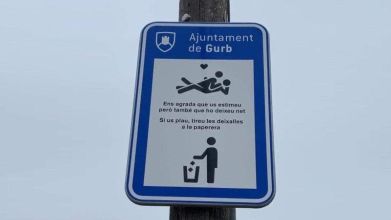 El cartel municipal dirigido a las parejas de un pueblo de Barcelona: “Nos gusta que os queráis, pero también que lo dejéis todo limpio”