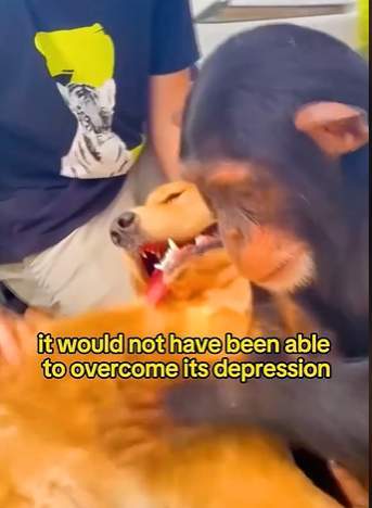Un chimpancé cura su depresión gracias a Keeper, el golden retriever