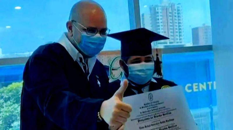 Junto a los profesores y familiares del alumno consiguieron que el joven cumpliese el sueño de graduarse de los estudios que estaba cursando y le felicitaron por su "superación, disciplina y constancia". Ni la enfermedad que sufre y el fuerte tratamiento que estaba recibiendo le impidieron a Elvis posar junto al rector con su birrete y diploma y agradecer a la Universidad todo el apoyo que había recibido.
