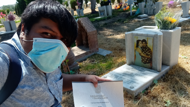 Un estudiante mexicano cumple la promesa que hizo a sus padres de graduarse y les lleva el título a la tumba dónde están enterrados