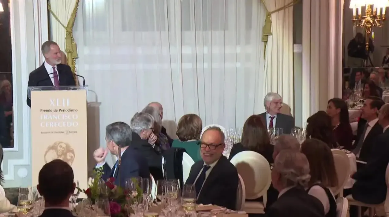 Tras este pequeño paréntesis humorístico, Felipe VI retomó el tono oficial del acto y continuó con la entrega del Premio Francisco Cerecedo, uno de los reconocimientos más prestigiosos del periodismo español.