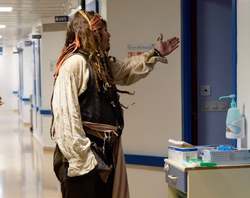 Jack Sparrow, encarnado por Johnny Depp, visita a niños hospitalizados