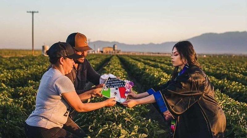 Las fotografías de la recién graduada en California (Estados Unidos) junto a sus padres en los campos que trabajaron tras llegar como inmigrantes se ha hecho viral tras compartir las imágenes en Facebook.