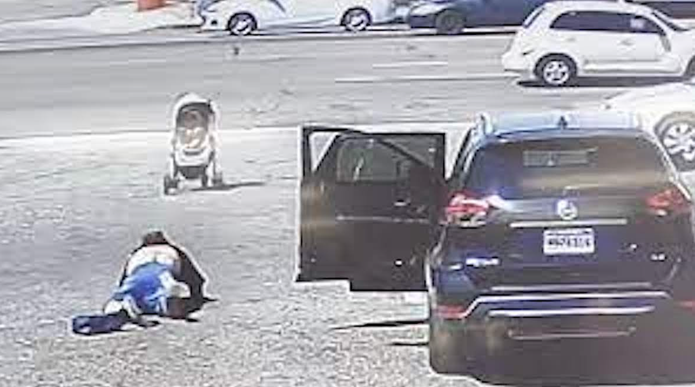 En la ciudad de Hesperia, California, una tía abuela observó impotente cómo una ráfaga de viento se llevaba un cochecito de bebé hacia una calle muy transitada.