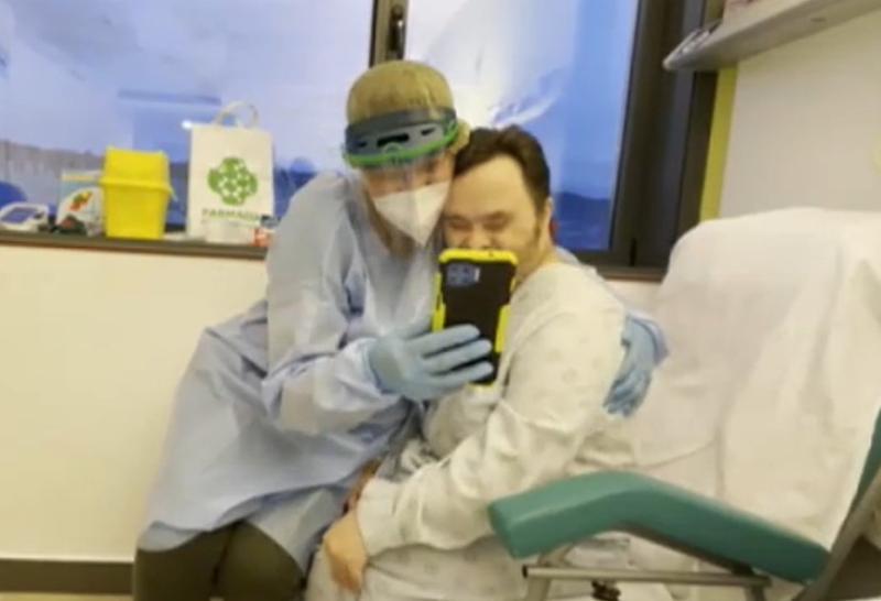 Luis, un gallego con Síndrome de Down, recibe con ilusión su primera dosis de la vacuna
