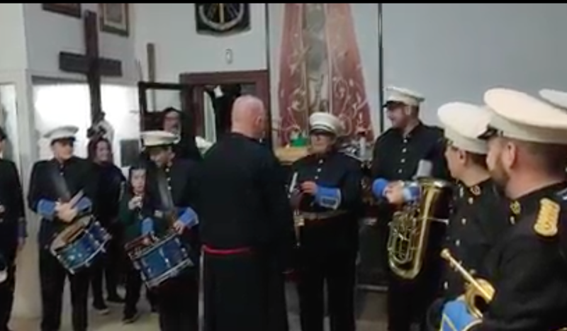 La pareja convive desde hace tres años y, aunque querían casarse, faltaba por supuesto la pedida y el anillo. De esta manera y teniendo como cómplices a miembros de la Cofradía, Manolo se lanzó a pedirle la mano a su chica.