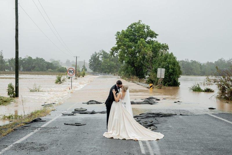 Ni las peores inundaciones en 50 años en Australia pudieron evitar su boda: la novia llegó en helicóptero