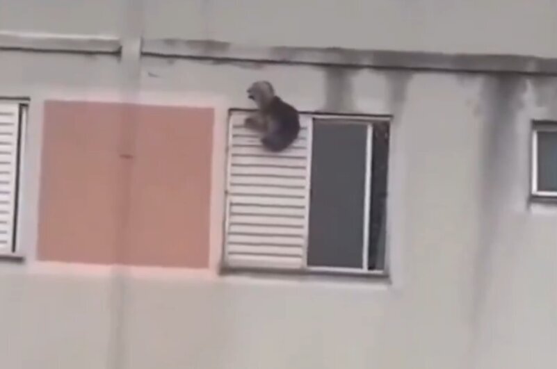 Un perro cae desde una ventana en Brasil y su dueña logra salvarlo con una caja