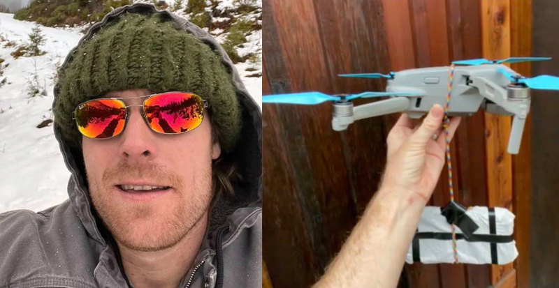 Casey Ryan se quedó atrapado en la nieve tras intentar salvar a otra persona y remolcarla. Pudo salvarse gracias a colgar su teléfono móvil del dron y enviar un mensaje de SOS