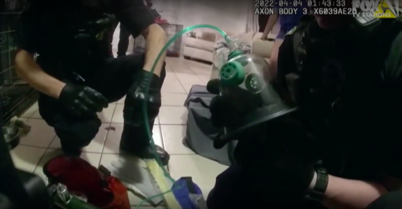 Para acceder a ellos, la policía tuvo que forzar la puerta con una pala. Al acceder al garaje los cachorros estaban dentro del comedero. Había siete cachorros y tres perros adultos que se encontraban en el jardín de la parte trasera.