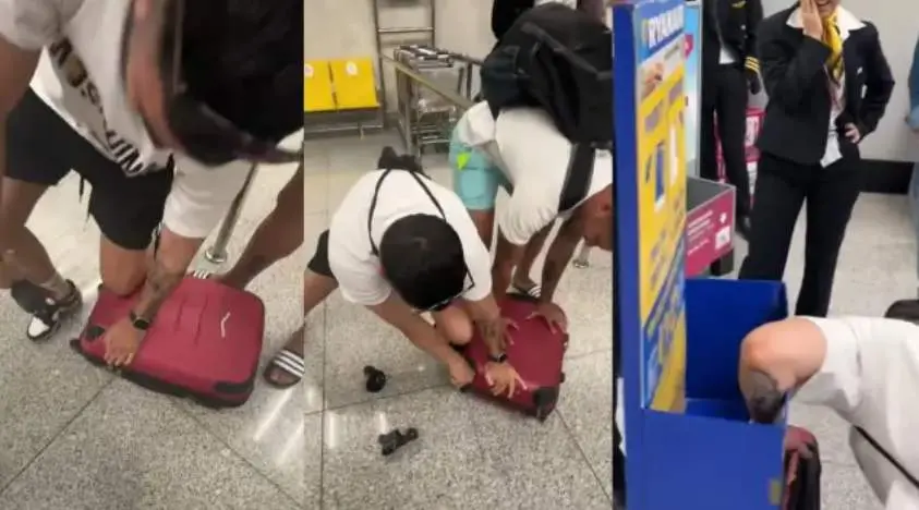 En un vídeo difundido por X (Twitter), se puede ver al joven y a sus amigos con una pequeña maleta en el suelo. Sin más preámbulos, comienzan a arrancar las ruedas una a una, llevándose consigo un trozo de la propia carcasa de la maleta.