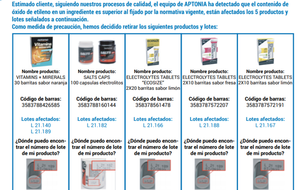 En dicho comunicado se indican que los productos afectados pertenecen a la marca Aptonia y por supuesto, ya han sido retirados tanto como los productos, como los lotes afectados, aunque algunos productos se vendieron antes de que la empresa tomara esta medida.