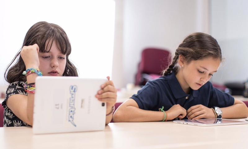 Niñas leyendo, deberes, escuela. - SMARTICK