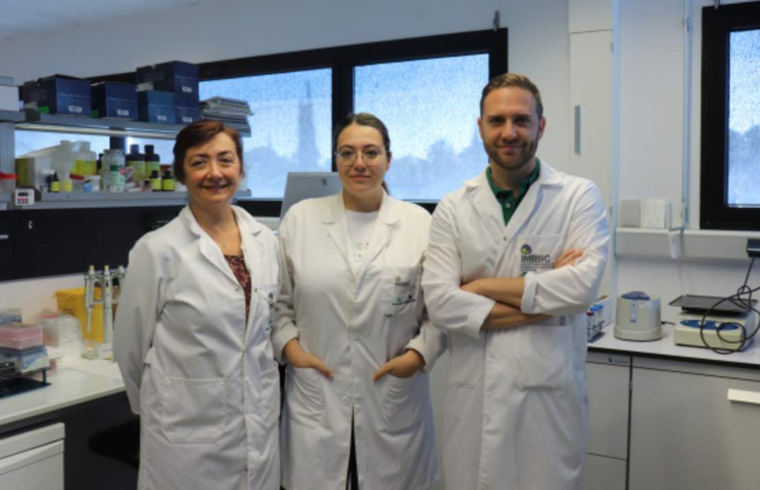 Las investigadoras Chary López-Pedrera y Laura Muñoz y el investigador Carlos Pérez, en las instalaciones del IMIBIC