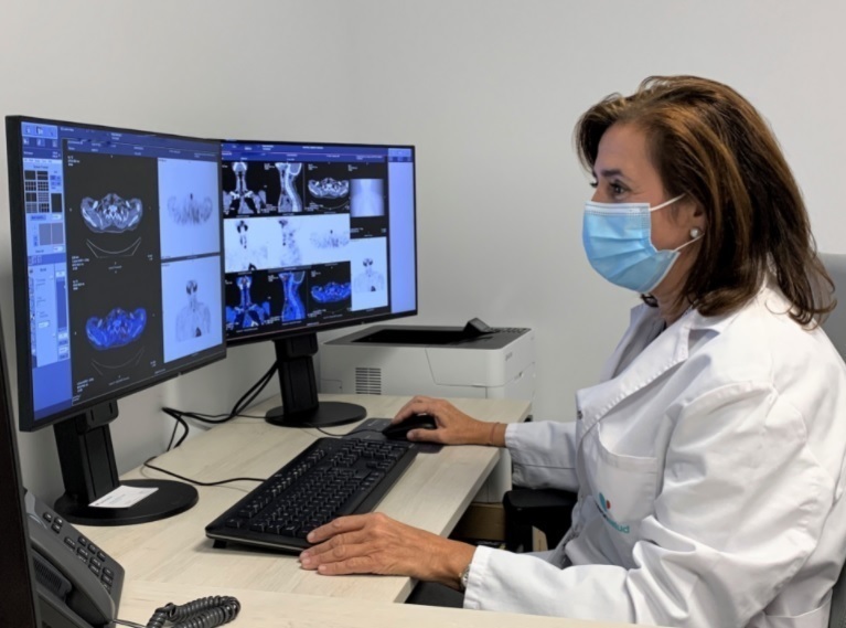 En este sentido, el  Hospital Quirónsalud Córdoba dispone de un equipo híbrido de imagen diagnóstica de última generación. Este equipo consta de dos cabezales detectores para obtención de imágenes gammagráficas de alta sensibilidad, unido a un equipo de TAC de 8 cortes que permite correlacionar anatómicamente y con bajas dosis de radiación, los hallazgos de la imagen gammagráfica y mejorarla en su procesado. Así pues, se trata de un equipamiento que aúna el diagnóstico funcional de la imagen gammagráfica, con el anatómico del TAC, obteniendo una valiosa información morfo-funcional del proceso que aqueja al paciente.