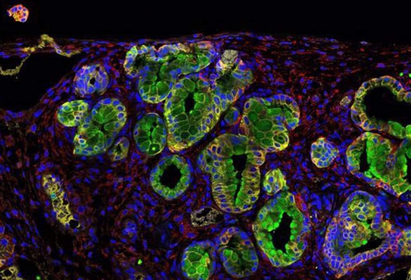 Inmunofluorescencia de un tumor de páncreas; la proteína PGLYRP1 en verde. - BRUNO SAINZ (IIBM-CSIC-UAM)