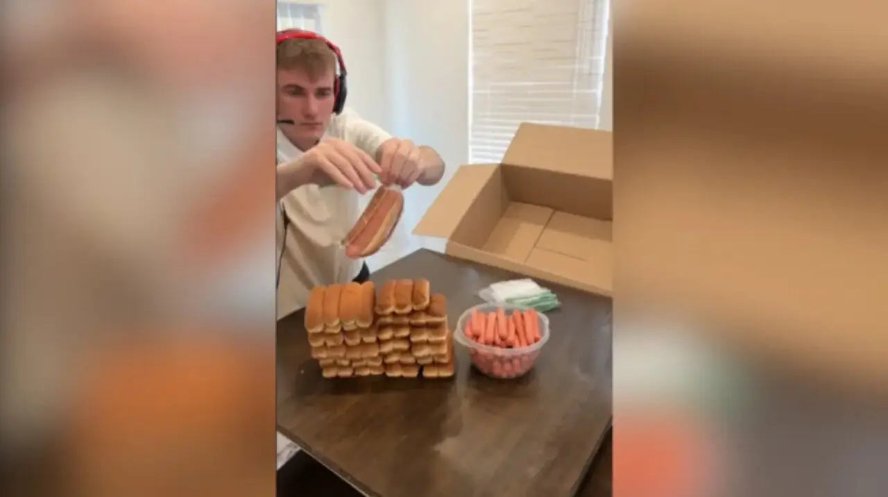 Streamer prepara decenas de perritos calientes para comer durante un mes