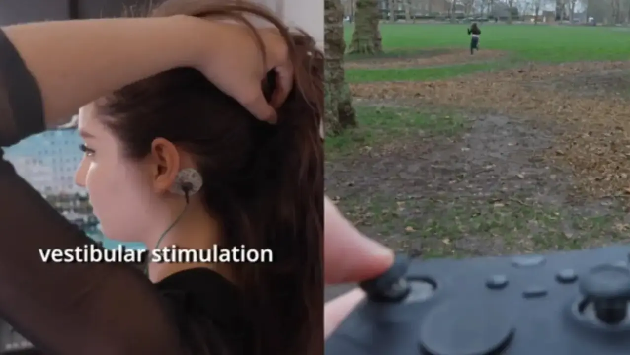 El efecto se ve claro: aunque se intente mantener la línea, el cuerpo responde a lo que “marca” el mando. En el vídeo, si quien sostiene el control lo mueve hacia la izquierda, ella acaba corriendo también en esa dirección, como si el cerebro recibiera una orden imposible de ignorar.