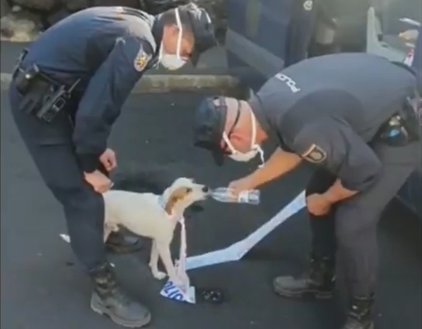 El animal estaba muy sediento, pero su estado de salud es bueno y ya se encuentra a salvo. El perrito agradeció los cuidados y las caricias de los dos agentes, que improvisaron una correa con precinto policial. Los veterinarios ya se han hecho cargo de él y están buscando a su familia.