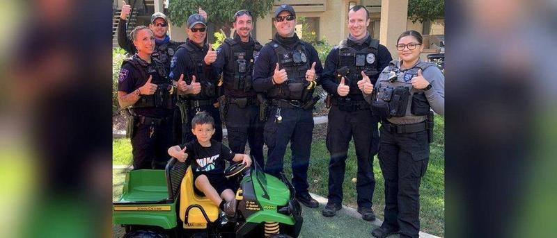 Varios agentes de policía de la localidad de Tempe, Arizona, Estados Unidos tuvieron un bonito detalle con el joven Gerald, de 4 años, a quien recientemente le habían robado su tractor, el juguete favorito del niño.