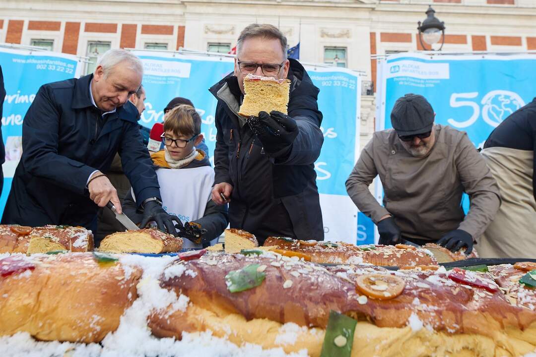 Aldeas Infantiles SOS reparte este domingo 5 de enero en la Puerta del Sol, en Madrid, 7.500 raciones de su tradicional Roscón de Reyes para visibilizar a niños en exclusión social.
