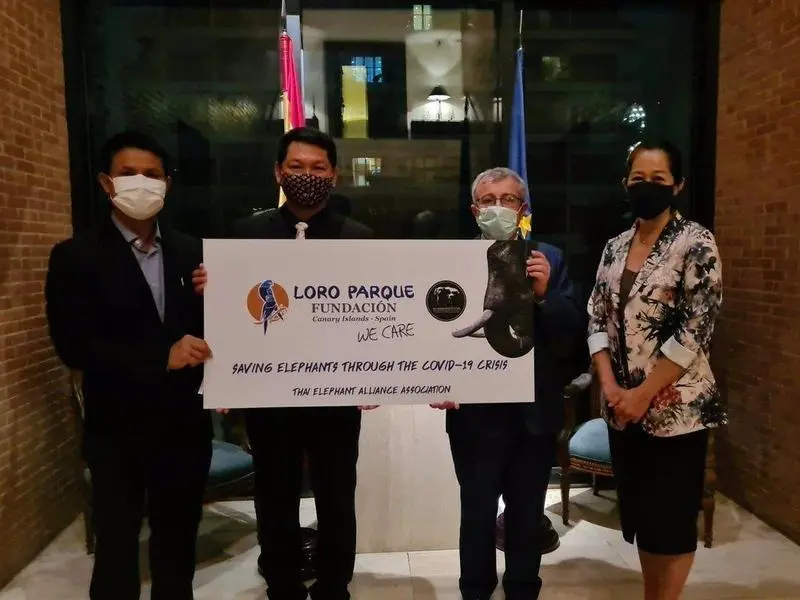 Aunque Loro Parque Fundación no ha podido hacer entrega de la donación personalmente, lo ha hecho en su representación el embajador de España en Tailandia, Emilio de Miguel Calabia, una vez que esto ha sido posible dadas las circunstancias.