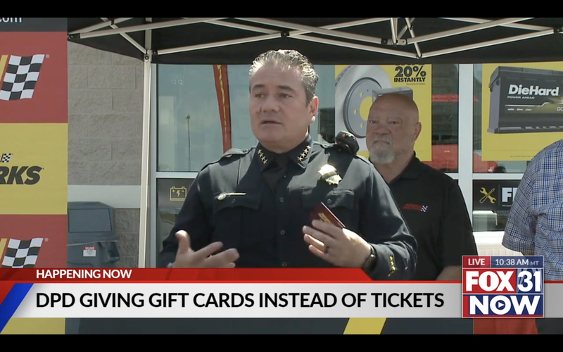 La policía de Colorado alegra a los conductores que no cuentan con el dinero para arreglar las piezas rota de su vehículos, y es que una tienda de Advance Auto Parts ha regalado al Departamento de Policía de Denver 100 tarjetas de regalo, por valor de 25 dólares cada una, para que se las entreguen a los conductores que normalmente son detenidos por la policía y reciben una advertencia o una multa.