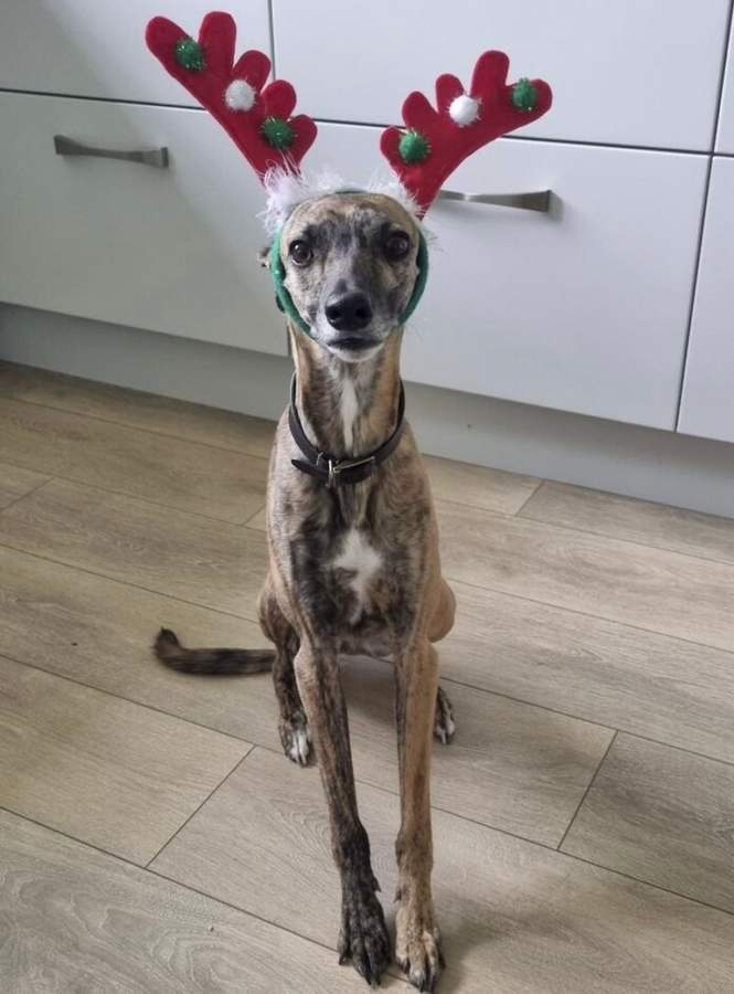Un perro tenía solo 12 semanas cuando lo llevaron a un hospital de animales con signos de abuso, pero ahora puede celebrar su "primera Navidad como es debido" con la enfermera veterinaria que ayudó a salvarlo