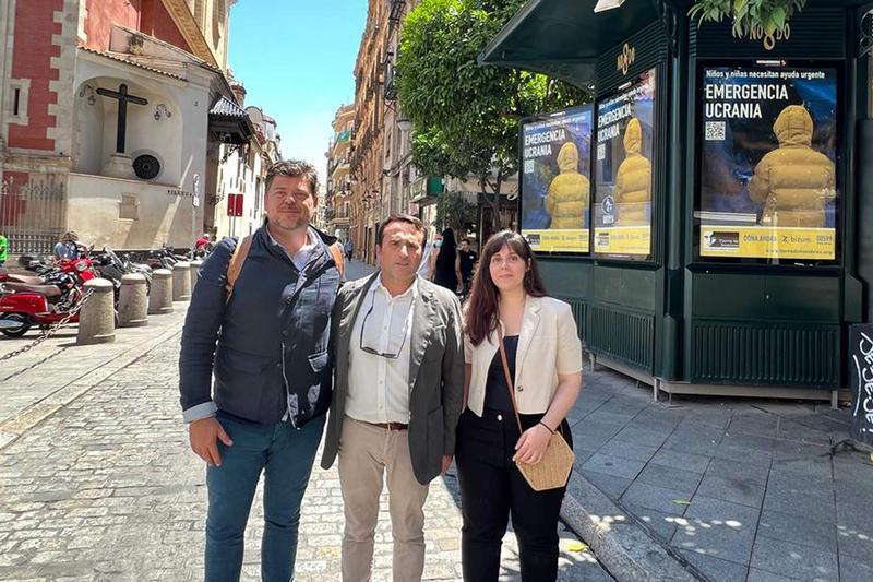 La Fundación Tierra de hombres lanza una campaña solidaria con Ucrania a través de mupis situados en zonas emblemáticas de la ciudad como la Plaza Nueva, calle Sierpes, Plaza del Salvador, Prado de San Sebastián, Paseo Colón, Plaza de la Magdalena, calle San Jacinto, calle Santa Fe y avenida Blas Infante