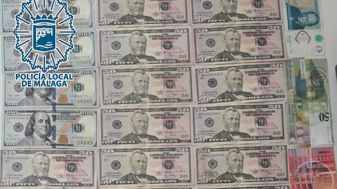 Según el informe publicado por la Policía Local de Málaga, la carpeta contenía además de documentación, un sobre blanco con hasta 1500 dólares americanos en billetes de 50 y 100, 15 libras esterlinas, 70 francos y dos tarjetas de crédito.