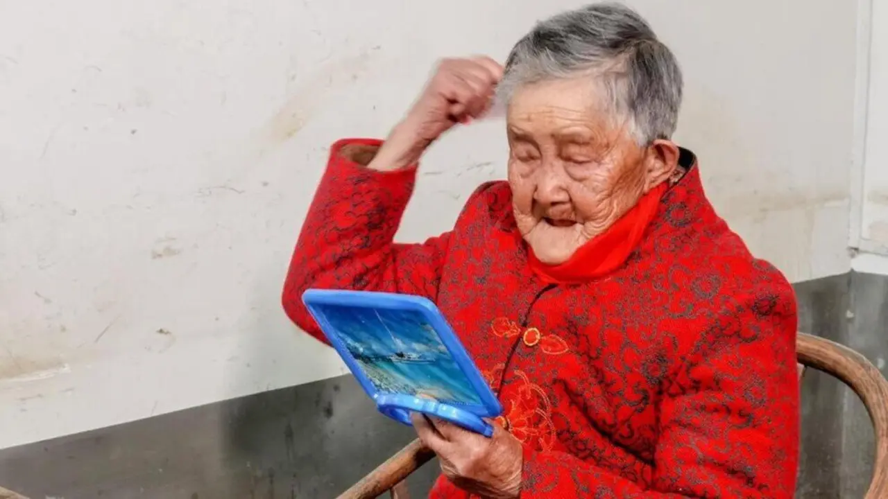 Una mujer china celebra su 124 cumpleaños rodeada de su familia en Nanchong